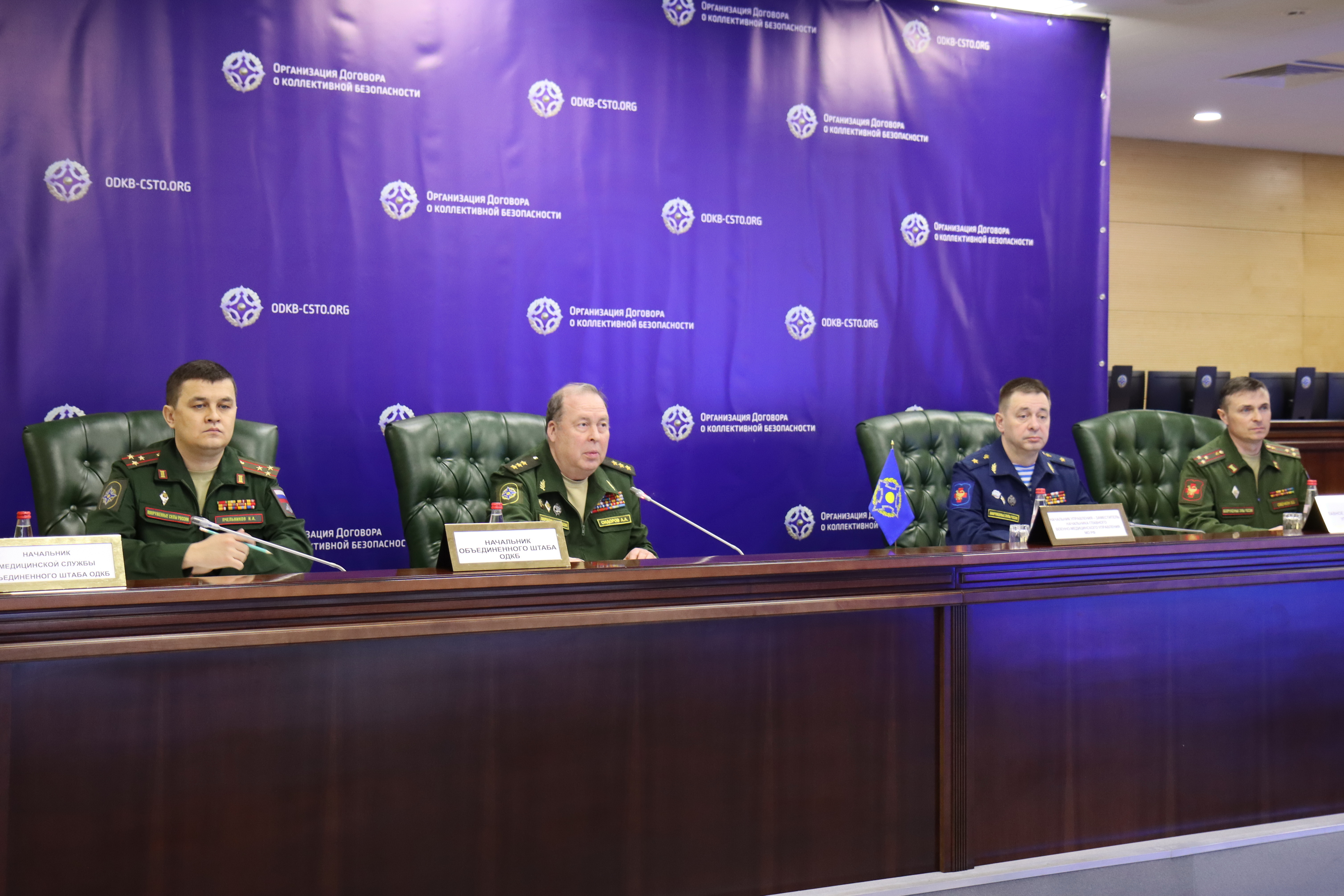 В Москве в Центре кризисного реагирования ОДКБ находились начальник управления – заместитель начальника Главного военно-медицинского управления Министерства обороны Российской Федерации генерал-майор медицинской службы Олег Калачёв и представители профильных структурных подразделений. Посредством видеоконференцсвязи в совместном мероприятии приняли участие руководители медицинских служб оборонных ведомств и главные военно-медицинские специалисты Армении, Беларуси, Казахстана, Кыргызстана, Таджикистана и Военно-медицинской академии имени С.М.Кирова.