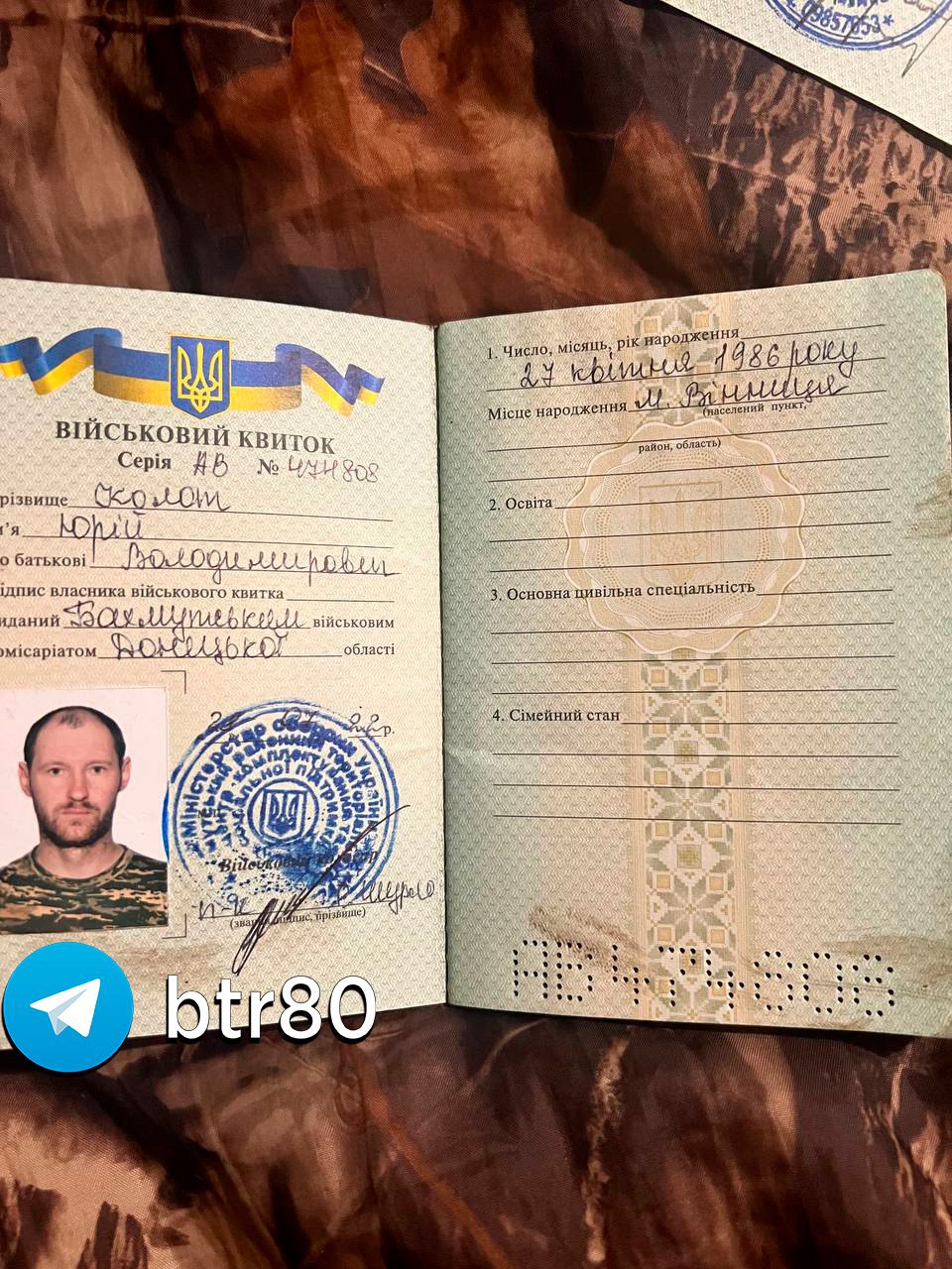 В telegram-канале «Операция Z: Военкоры Русской Весны» появилась свежая информация о потерях кадрового состава ВСУ на Лиманском участке, количество убитых и раненых увеличивается. Бойцы группировки «Отважные» обнародовали военные билеты скончавшихся боевиков Украины. Погибшие обороняли опорный пункт в Кременском районе и будут числиться как без вести пропавшие.