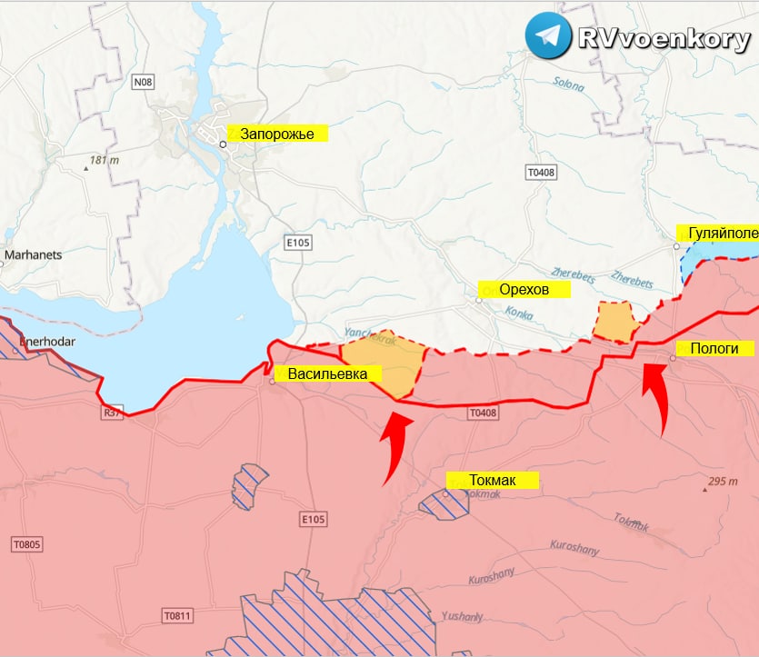 «На Запорожском и Херсонском участках ВС РФ используют танки, минометы и артиллерию в более 35 пунктах: в Малиновке, Малой Токмачке, Белогорье и Малых Щербаках, Зеленовке, Днепровском, Змиевке, Антоновке, Гигантском», — доложил Генштаб ВСУ.