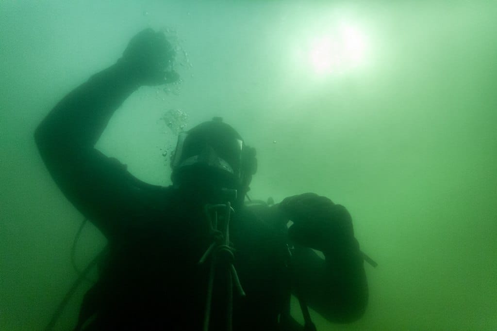 «Во время погружения с водолазом постоянно поддерживается радиосвязь, а также определенными сигналами информация дублируется через канат», — рассказал старший водолазной группы ОМОН «Меч» на транспорте Дмитрий.