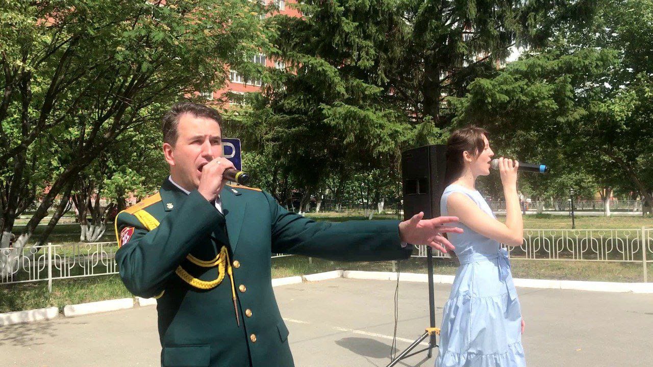 Импровизированную сцену для маленьких зрителей развернули прямо под окнами Областной детской клинической больницы, в которой ребята лечатся. Военные артисты исполнили популярные детские песни из кино и мультфильмов. Ребята наблюдали за концертной программой из окон своих палат, аплодировали, подпевали и даже пританцовывали под музыку.