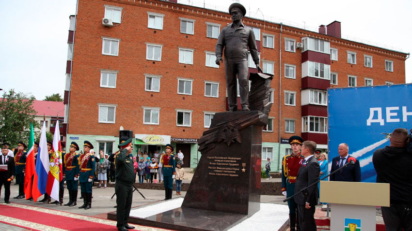 Пресс-служба Приволжского округа войск национальной гвардии Российской Федерации проинформировала, что вчера, 12 июня, на территории города Чистополь в Республике Татарстан был открыт памятник Герою Российской Федерации, генерал-полковнику Игорю Груднову, который является уроженцем данного населенного пункта.