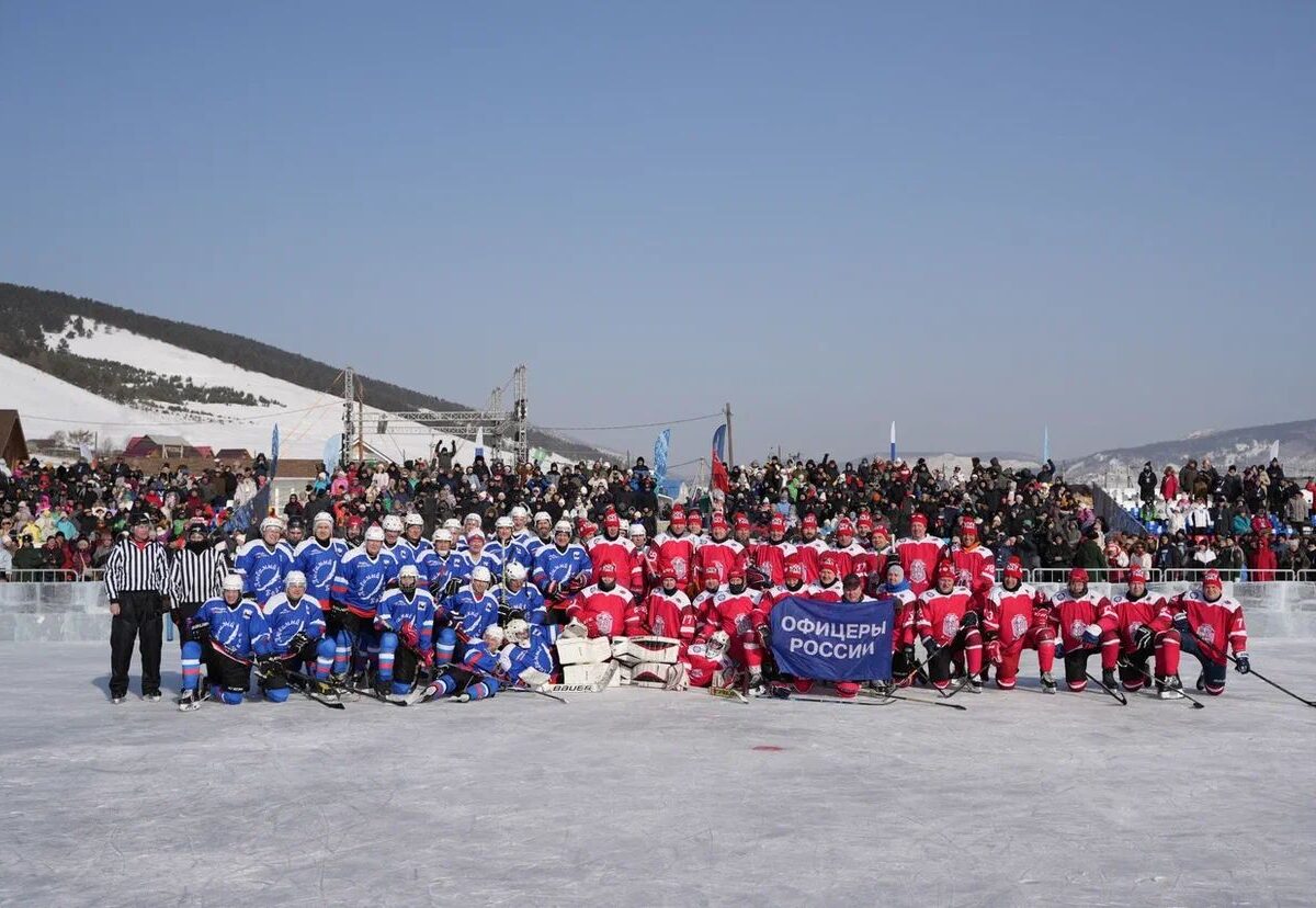 В День защитника Отечества на льду озера Байкал прошел дружественный хоккейный матч между командой Правительства Иркутской области и командой «Офицеры России» и звездами спорта, включая героев России.