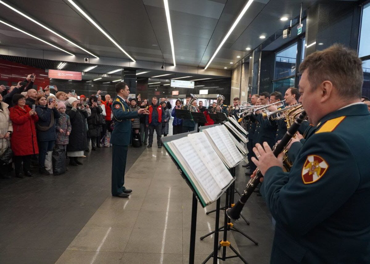 Военные музыканты Росгвардии выступили 8 марта в Московском метрополитене