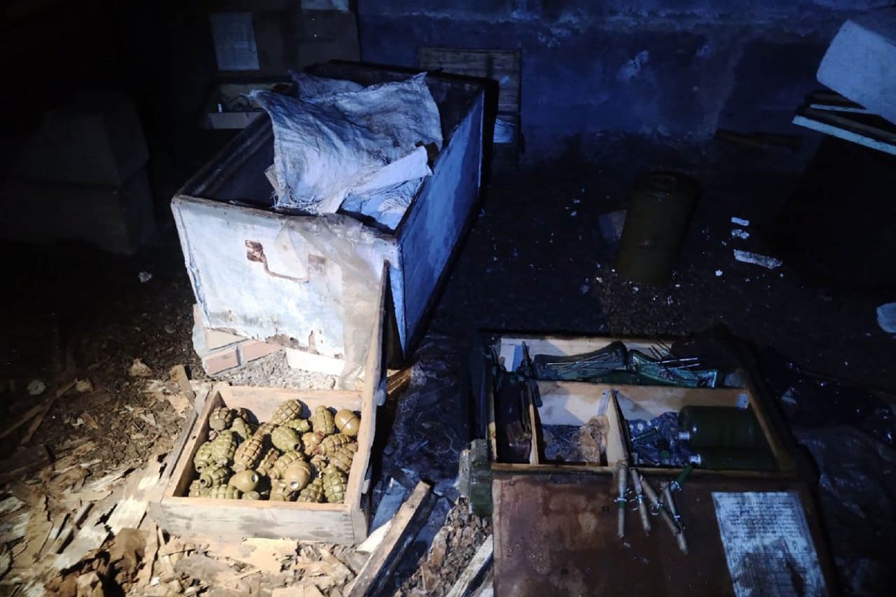 В тайнике было найдено около 1 тонны пластичного взрывчатого материала и более 137 килограмм тротила, который украинские националисты использовали для изготовления самодельных взрывных устройств. Кроме того, было обнаружено более 78 противотанковых и противопехотных мин, 12 дымовых мин, 119 гранат различных типов, а также свыше 34 тысяч боеприпасов к стрелковому оружию.