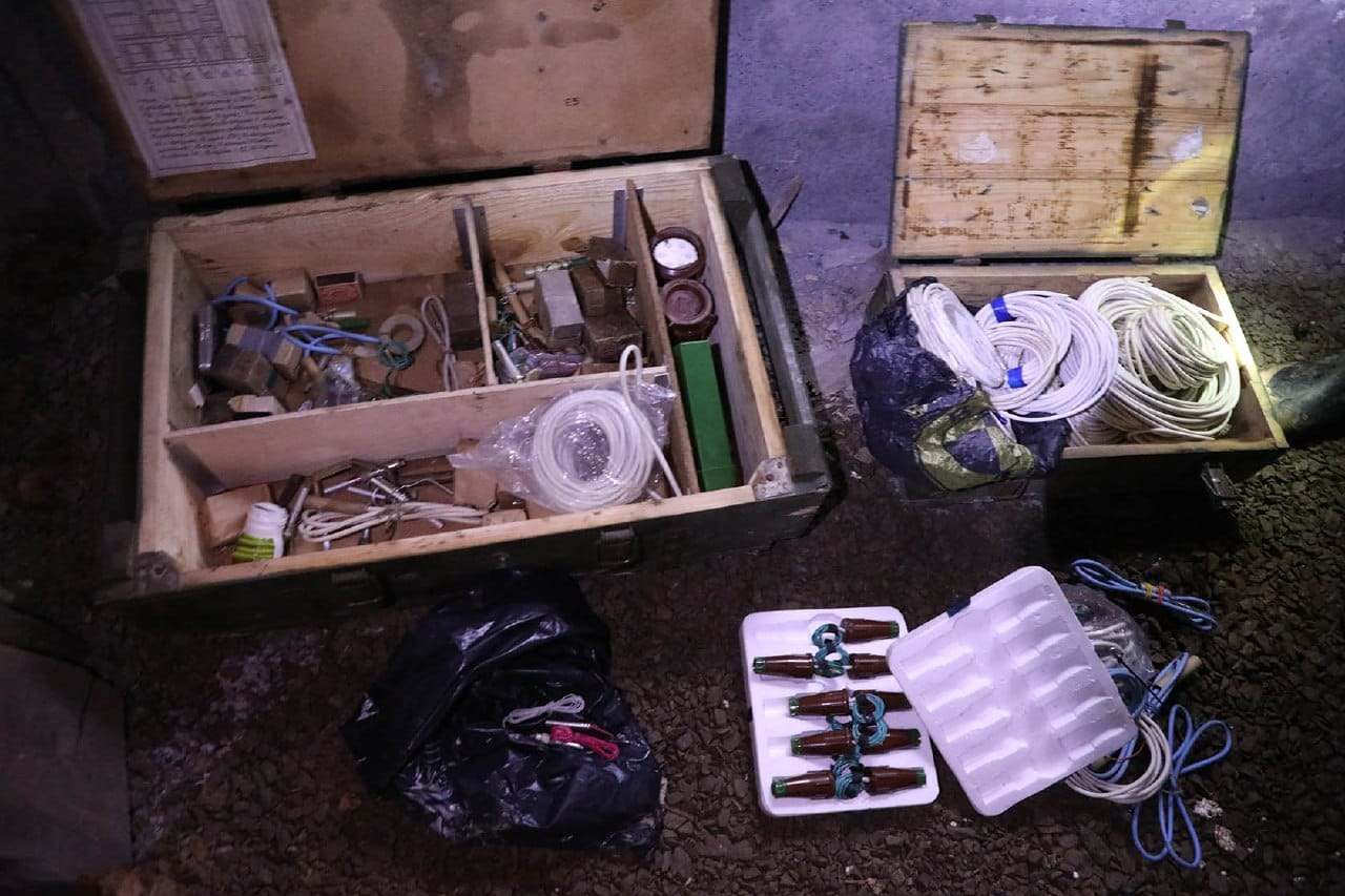 В помещении, предназначенном для изготовления взрывных устройств, были найдены компоненты для их создания, включая пластичное взрывчатое вещество, тротил, огнепроводный шнур, капсюли-детонаторы, минные универсальные взрыватели, огнепроводные трубки и поражающие элементы. Также было обнаружено 50 готовых к использованию самодельных взрывных устройств.