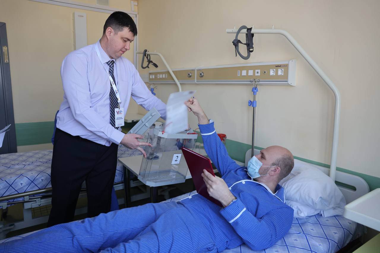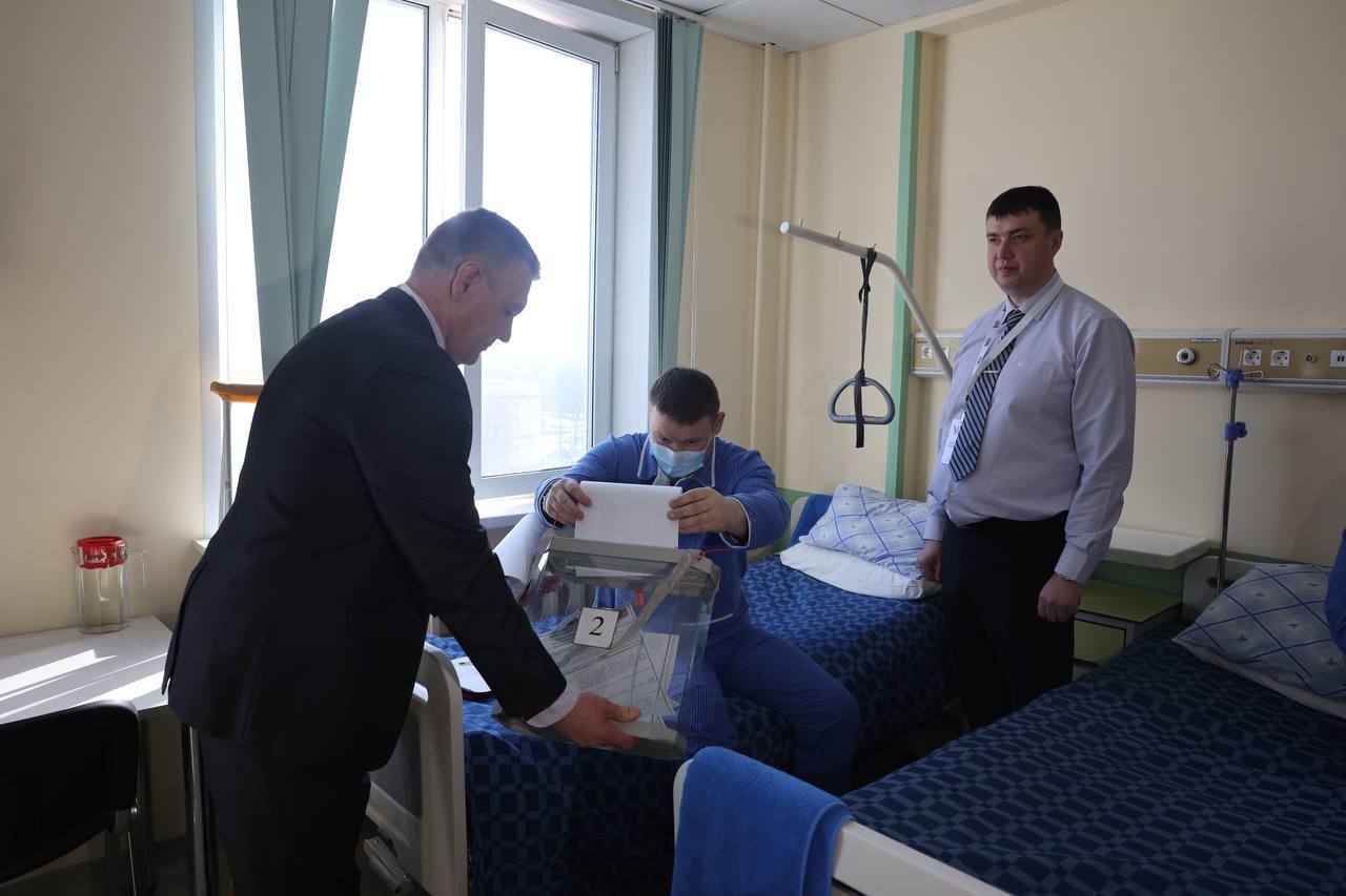 Избирательный участок разместился в конференц-зале госпиталя, а пациенты с ограниченной подвижностью могут проголосовать непосредственно в палатах, используя переносную урну.