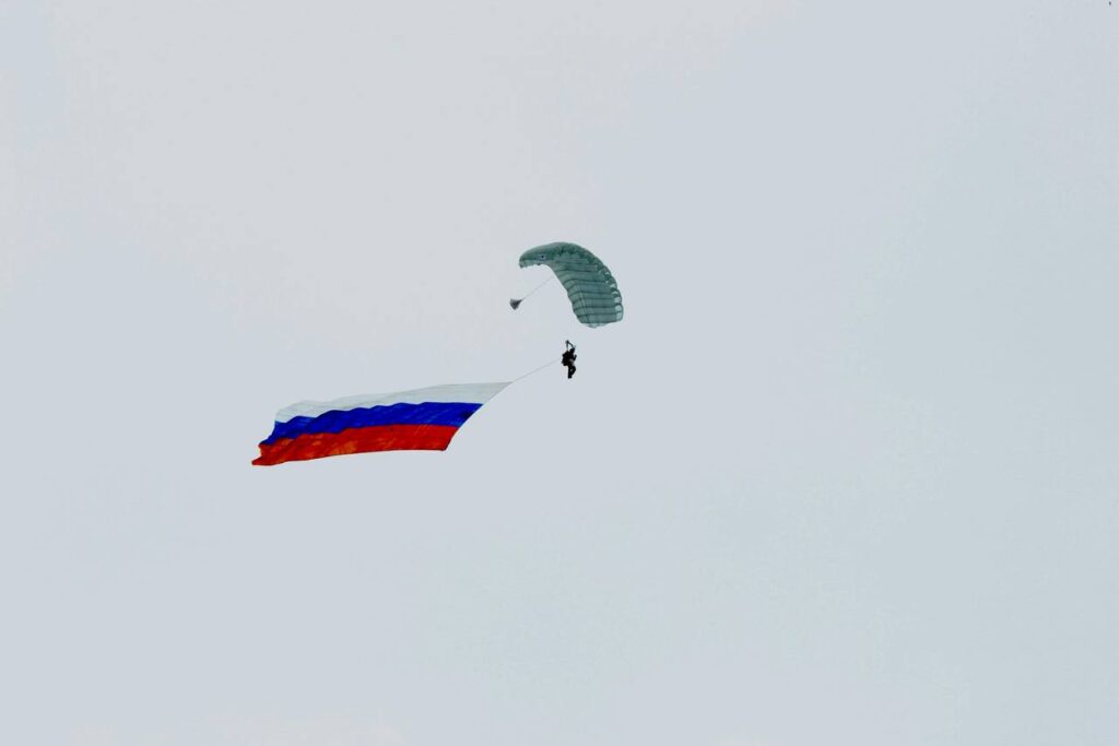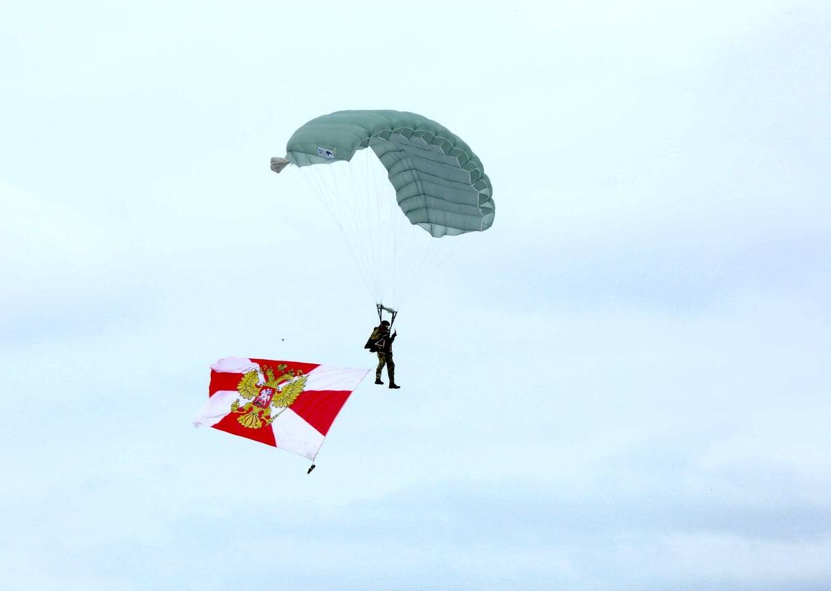 «Одновременно росгвардейцы развернули в небе Государственный флаг Российской Федерации, Федеральной службы войск национальной гвардии РФ и флаг центра специального назначения «Витязь» Росгвардии», — говорится в заявлении ведомства.