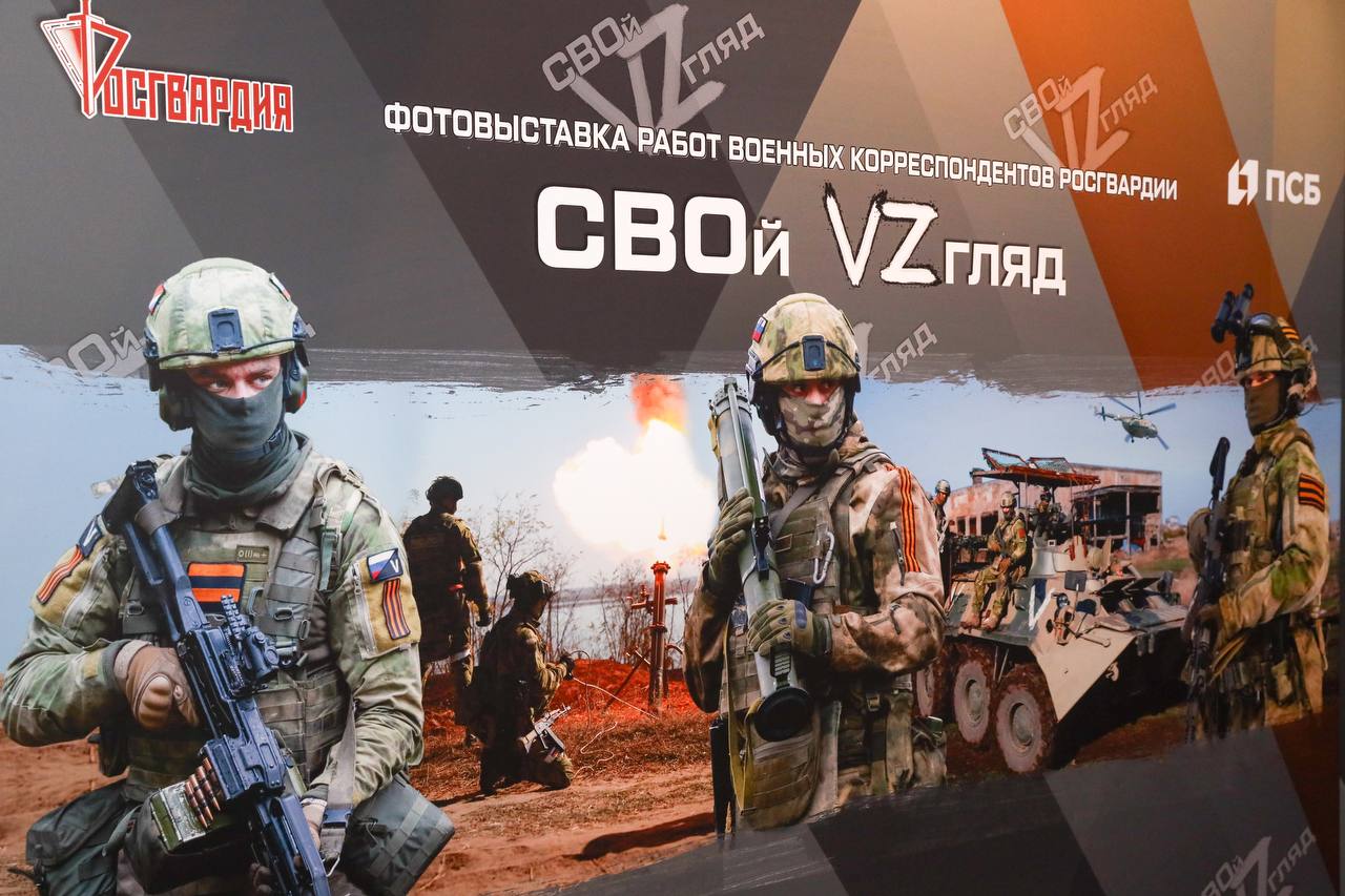 Экспозиция «СВОй Vzгляд» включает десятки фотографий, сделанных военными корреспондентами, а также графические работы офицера Дмитрия Г., посвященные будням и боевой деятельности военнослужащих Росгвардии.