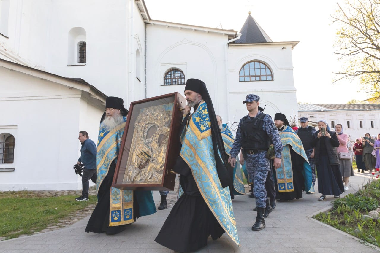 Сотрудники Росгвардии обеспечили безопасность доставки чудотворной Тихвинской иконы Божией Матери из Успенского собора Тихвинского мужского монастыря Ленинградской области в Храм Христа Спасителя в Москве.
