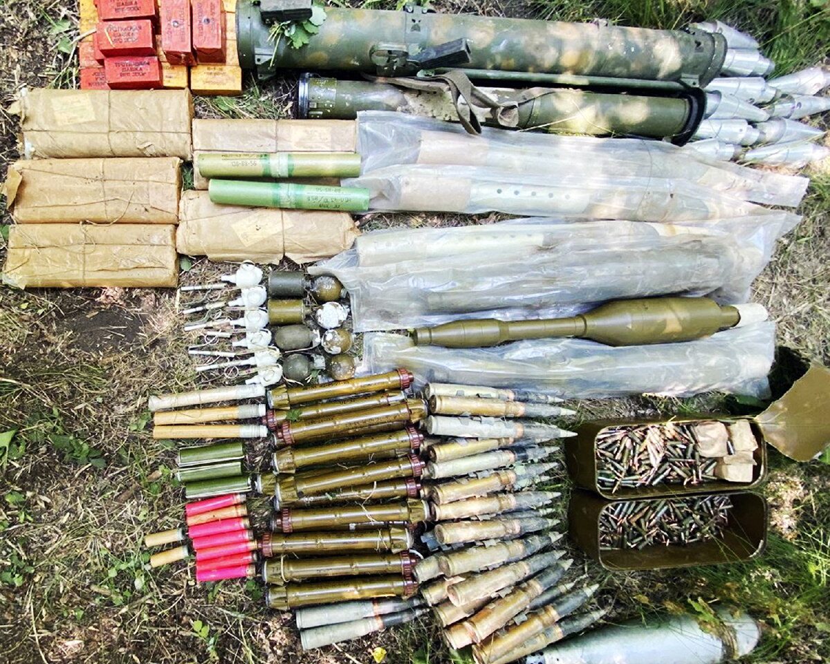 Так, из заброшенного строения было изъято две 120-мм минометные мины, 30-мм снаряды, гранатомет РПГ-26, реактивный пехотный огнемет, выстрелы к гранатометам и более тысячи боеприпасов к стрелковому оружию. В тайнике также находилось более 16 кг взрывчатых веществ и ручные гранаты, в том числе производства США и Болгарии.