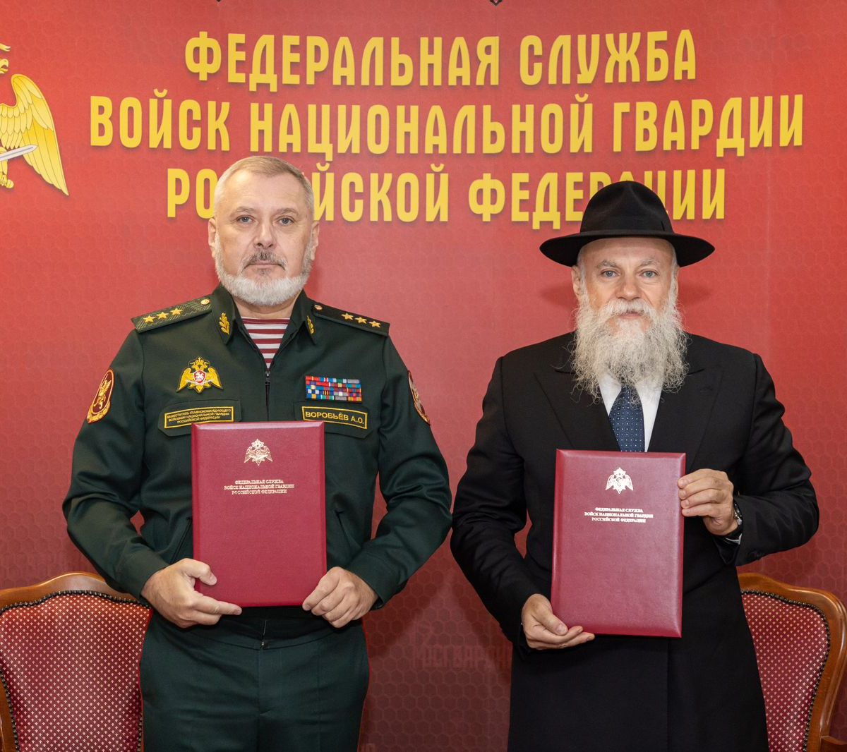 По поручению директора Росгвардии генерала армии Виктора Золотова документ подписал заместитель главы ведомства генерал-полковник Алексей Воробьев. Со стороны Федерации еврейских общин России подпись под соглашением поставил президент ФЕОР Александр Борода.