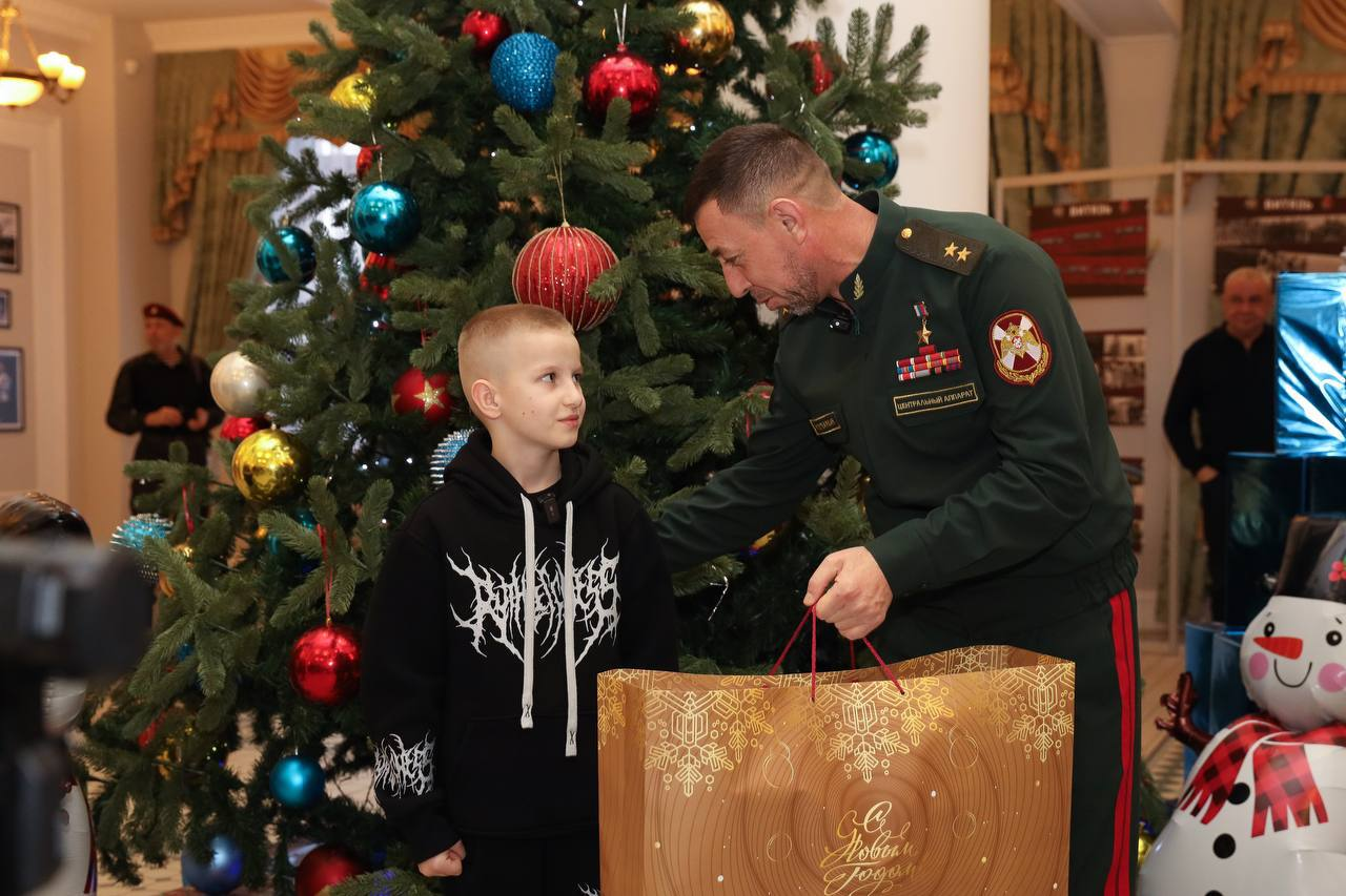 Герой России генерал-лейтенант Павел Индык побеседовал с мальчиком, поздравил его с наступающим Новым годом, пожелал крепкого здоровья, успехов в учебе и всего наилучшего.