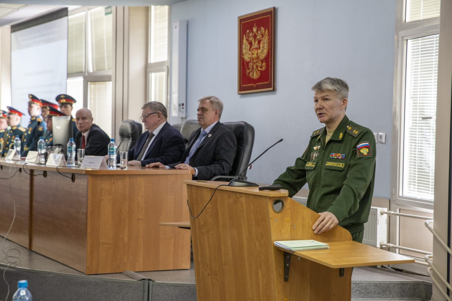 Перед участниками мероприятия выступил заместитель Председателя Верховного Суда РФ, председатель Судебной коллегии по делам военнослужащих Верховного Суда РФ генерал-лейтенант юстиции запаса Владимир Хомчик. Тема его доклада – «Деятельность военных судов (военных трибуналов) в условиях войн, вооруженных конфликтов и специальной военной операции: организационные и правовые аспекты».