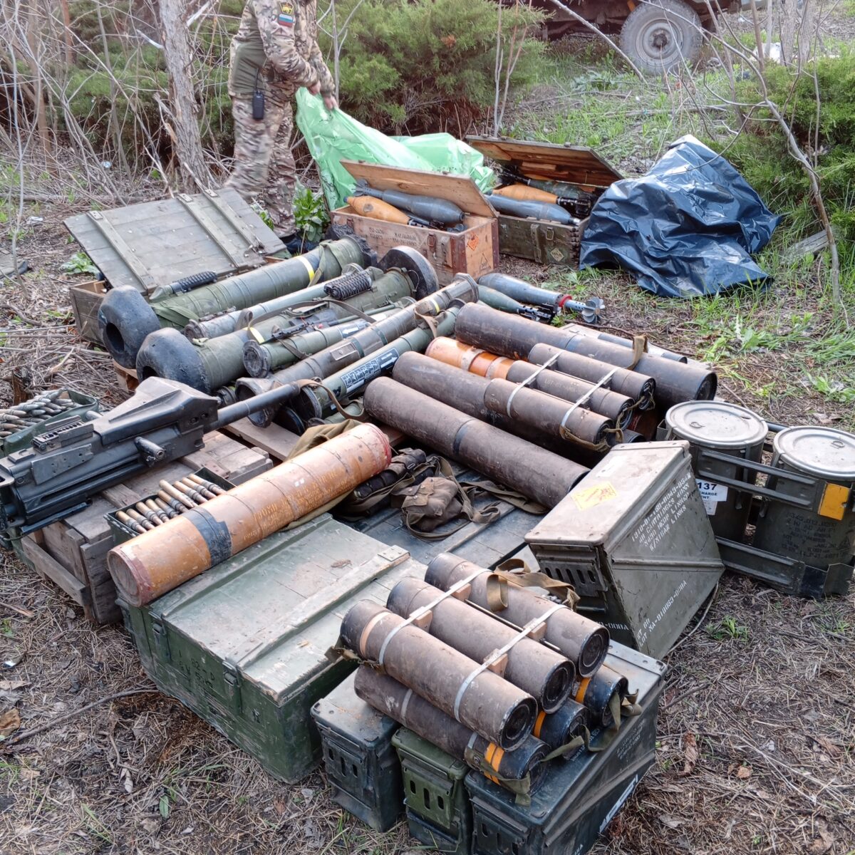 В результате совместных оперативно-боевых мероприятий управления ФСБ России по ДНР и подразделений группировки войск «Восток» Вооруженных сил России, из тайника изъяли 22 единицы вооружения и свыше 300 гранат и мин, различных образцов. Среди них — два пулемета, два ручных противотанковых гранатомета образца НАТО, два противотанковых ракетных комплекса Javelin, восемь болгарских ручных гранатометов, восемь шведских одноразовых гранатометов, а также минометные мины калибра 120 мм, противотанковые мины и гранаты производства НАТО.