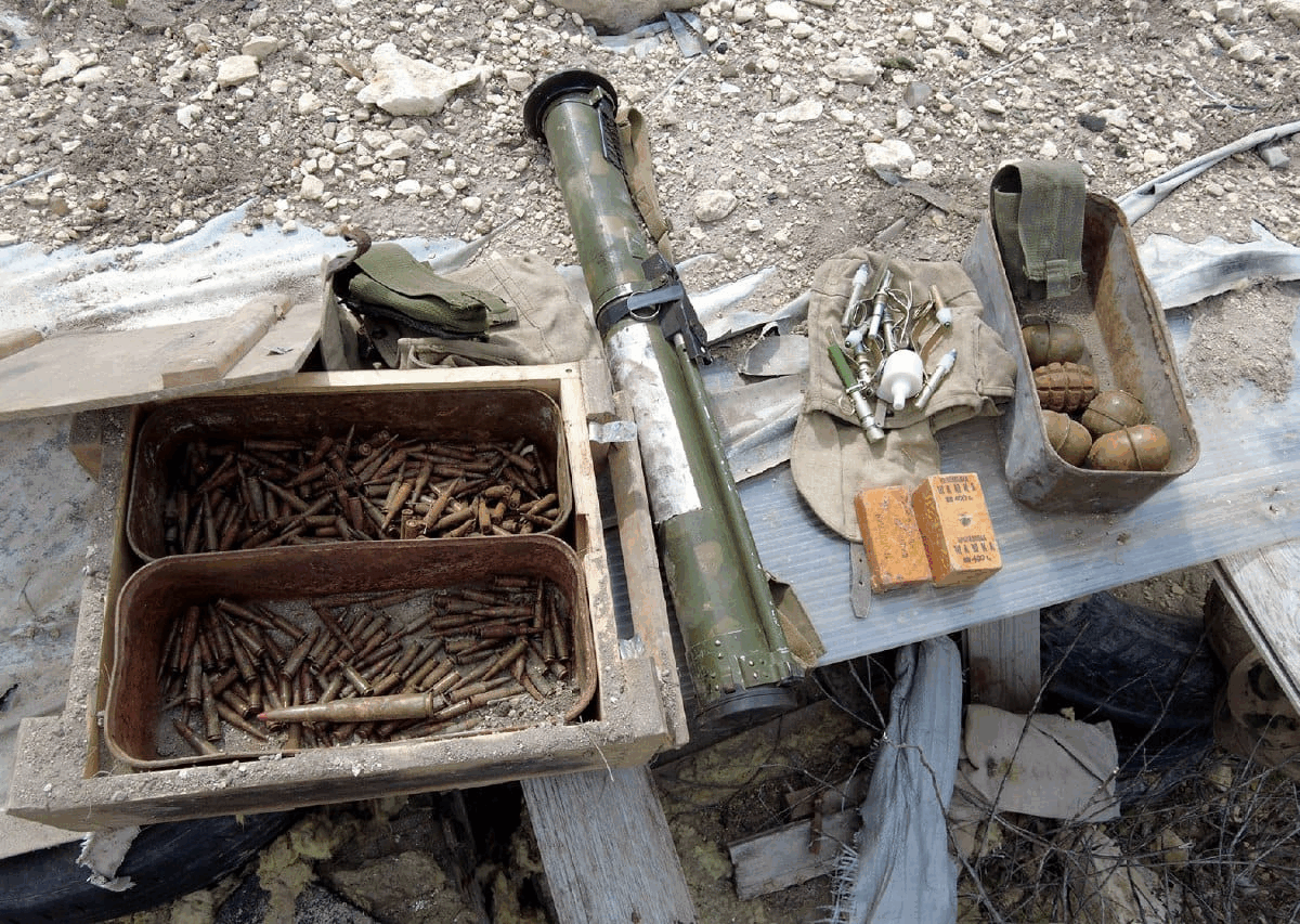 Взрывотехники ОМОН Росгвардии изъяли из схрона свыше 300 патронов разного калибра, пять гранат, более 35 взрывателей, 600 грамм тротила и реактивный штурмовой гранатомёт.