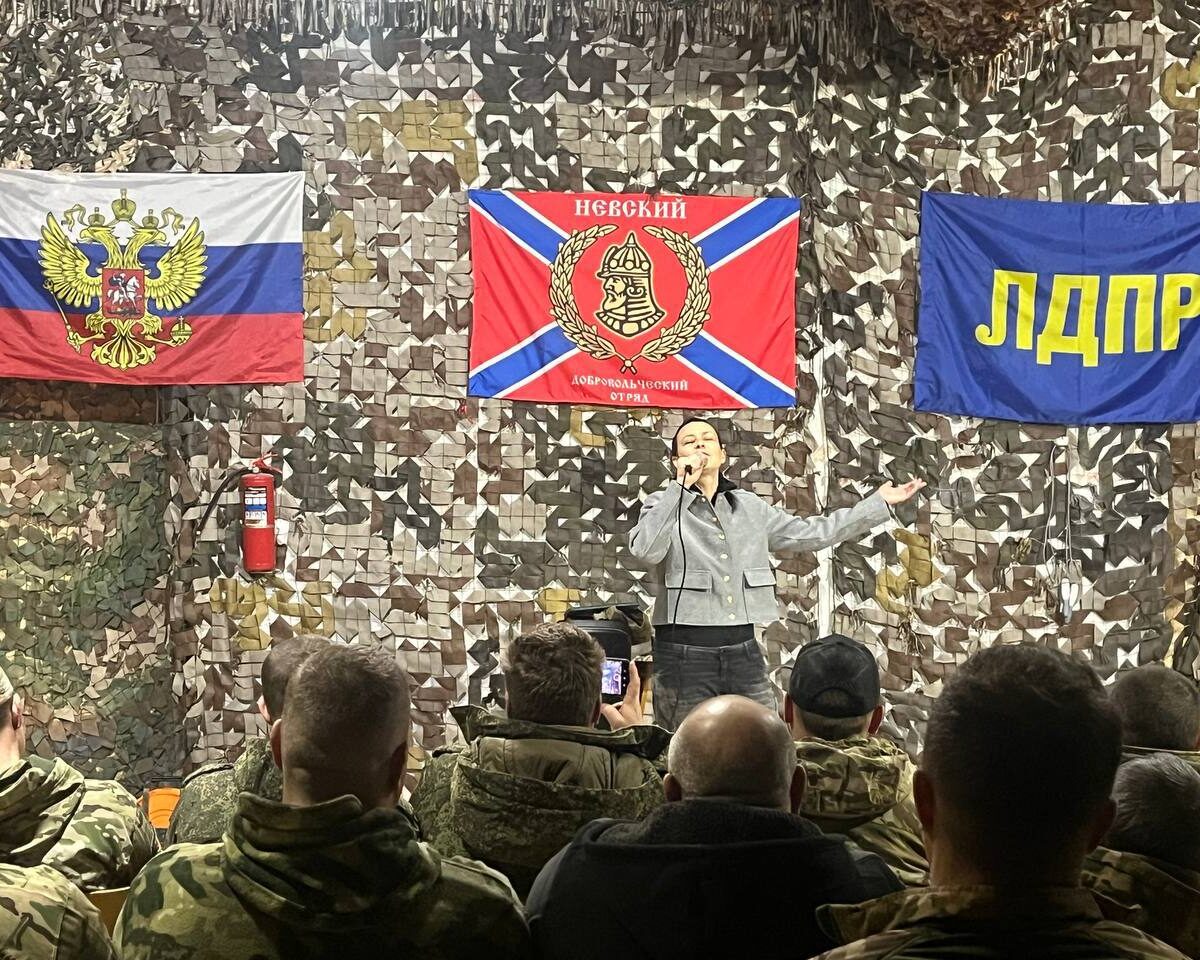 Певица Юлия Чичерина с концертом посетила бригаду имени Александра Невского, сообщает Telegram-канал отряда «Невский» ДК ВС РФ.