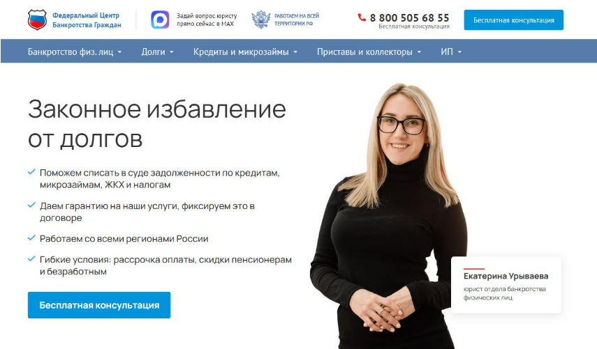 Не откладывайте решение финансовых проблем — обратившись в «Банкрот Консалт», вы сможете вернуть себе финансовую свободу и уверенность в будущем. Запишитесь на бесплатную консультацию с юристом, чтобы оценить возможность списания задолженности и другие варианты урегулирования вашей долговой нагрузки.
