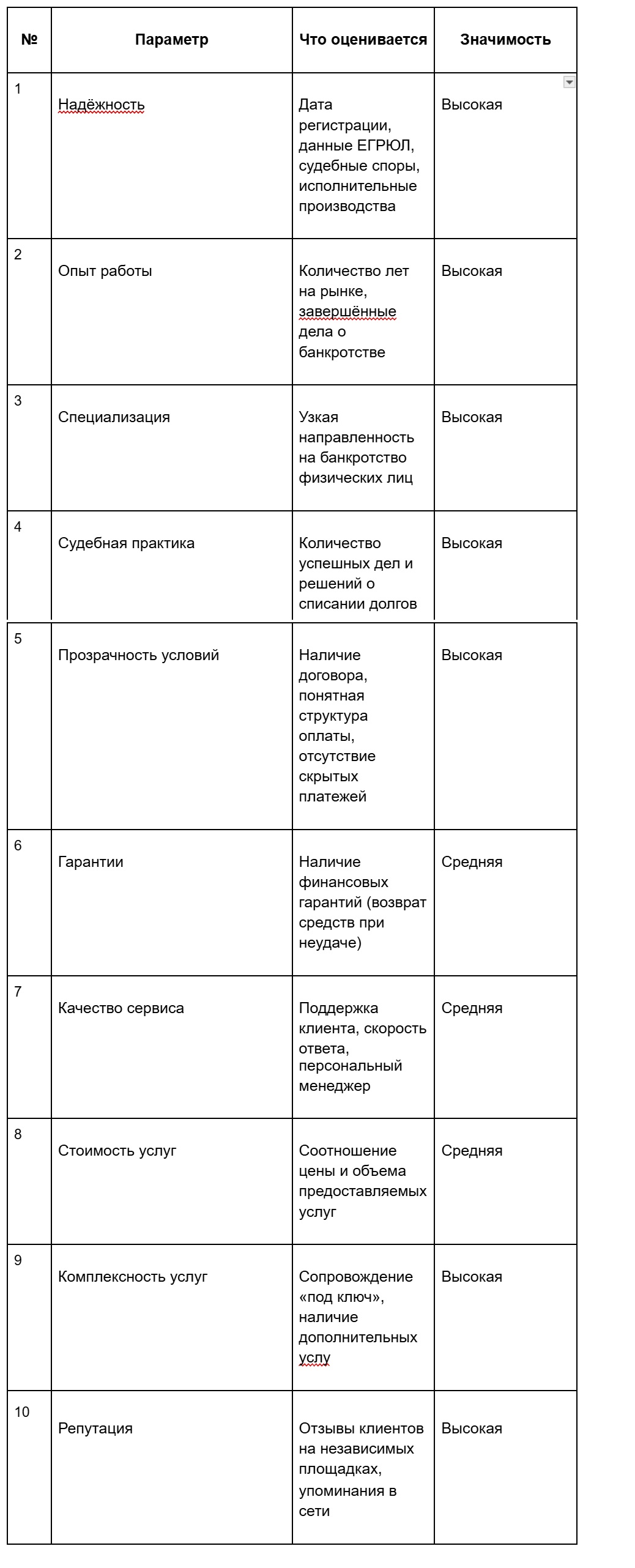 Чтобы выделить действительно надежные юридические компании среди сотен предложений на рынке, мы используем комплексную систему оценки. Каждая организация анализируется по ключевым параметрам, после чего формируется средний итоговый балл, на основании которого определяется позиция в рейтинге.