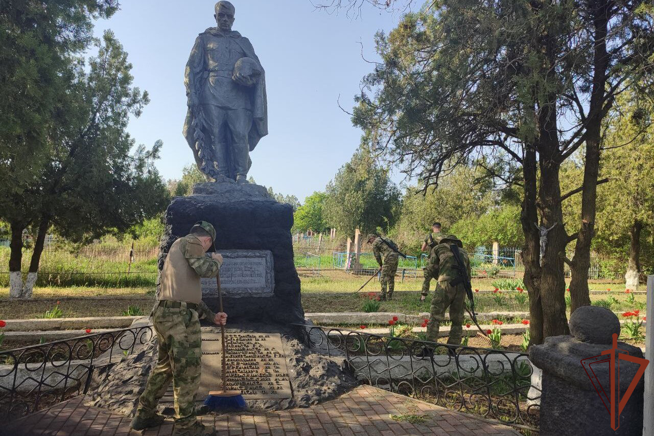 Росгвардейцы вместе с сотрудниками военной контрразведки восстановили мемориал воинам Великой Отечественной войны в ДНР